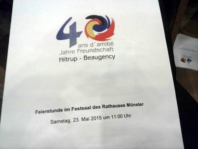 Wir freuen uns über die 40-jährige Partnerschaft zwischen Hiltrup und Beaugency, die an diesem Samstag in einer Feierstunde im Rathausfestsaal der Stadt Münster von Beaugencys Bürgermeister David Faucon und Hiltrups Bezirksbürgermeister Joachim Schmidt bekräftigt und erneuert worden ist.